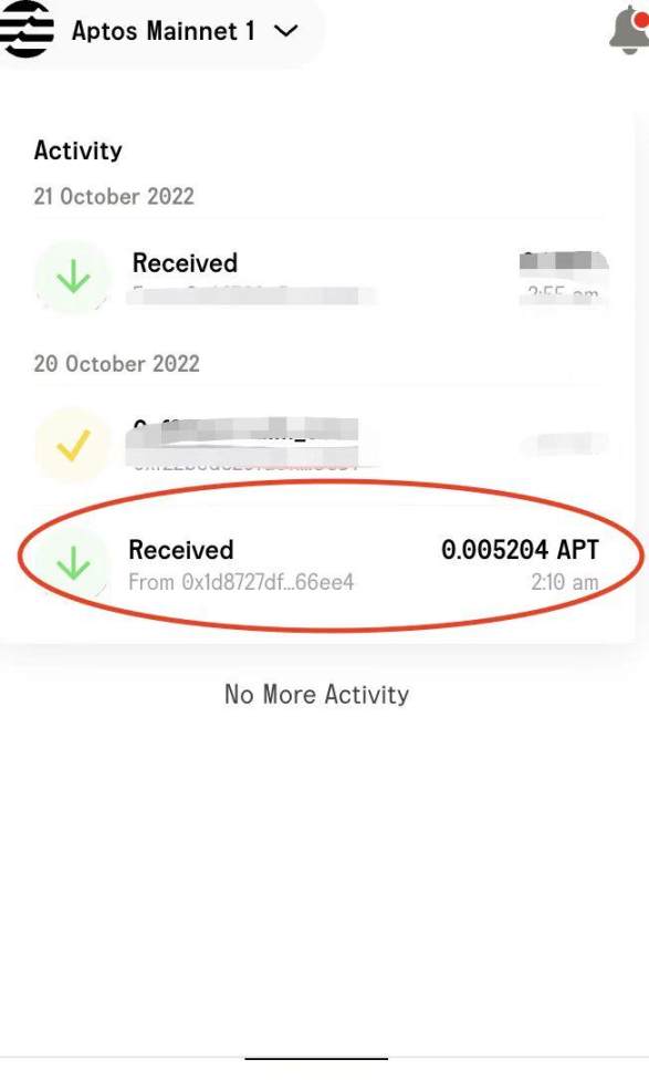确认交易后,首次转账金额还需要在界面上方 Claim,资产才能从协议合约转到个人 Aptos 账户,后续同一资产再次转账则无需 Claim 就可以直接到账。