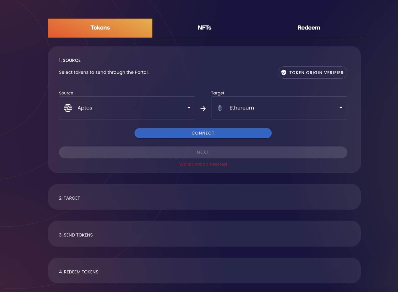 和 LayerZero 不同,因为是在协议内部集成 Aptos,所以和其他网络跨链一样,需要目的地网络账户有 Gas 费,因此要想使用 Portal 跨链桥通过以太坊等网络向 Aptos 网络转账,需提前在 Petra 钱包中准备好足够的 APT 作为 Gas 费,否则无法成功转账。