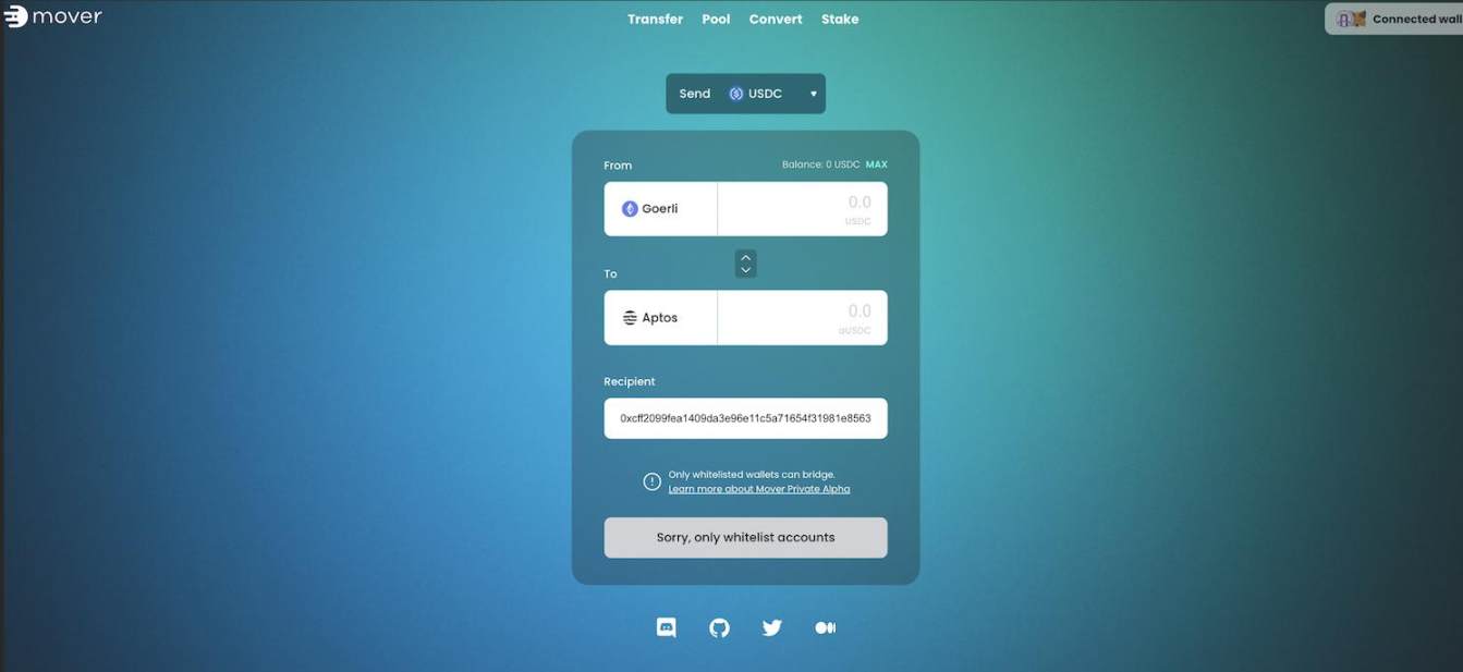 除了以上两个已经部署 Aptos 主网的跨链桥,热度较高的还有 Aptos 原生跨链协议 Mover,其口号是「 EVM 网络和 Aptos 之间的第一座桥梁」(因为主网上线慢了一步,「第一个」就需要再掂量一下了 :)