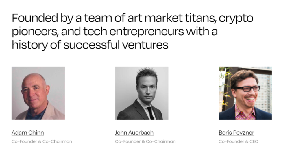 Chinn 在一次采访中说道:“在 2019 年底,我与 John Auerbach 交谈并对他说,艺术界真的需要一个点对点销售平台。它到现在都还没实现真是太疯狂了,有趣的是,你应该提到这一点,因为我一直在与 Boris Pevzner 谈论这样做。而且,长话短说,2019 年底,我们开始建设这个项目,并在 Covid 期间创建了一项业务。”