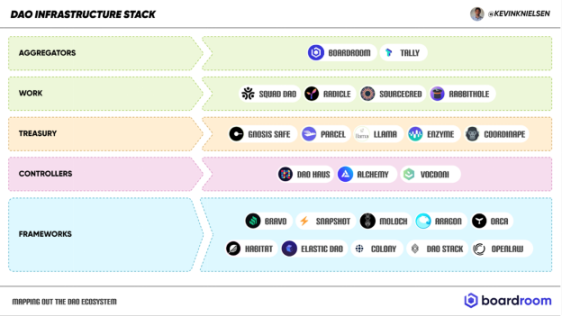 Other examples of tools include Hedgey (a deal-offering protocol for DAO treasuries and buyers), Tally (an on-chain voting platform), Llama (treasury management-as-a-service for DAOs), Syndicate.io (decentralized investing protocol). These tools enable the proliferation of DAOs and provide the fundamental basis for DAO operations.
