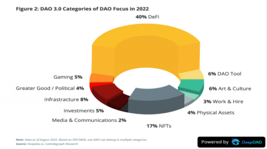Recent research published by Cointelegraph defines DAO 3.0 as the stage where DAOs flourish in a variety of forms. The idea of decentralization has started to influence more communities that were arguably not crypto-native but decided to adopt DAOs to increase democratic participation and bottom-up governance.
