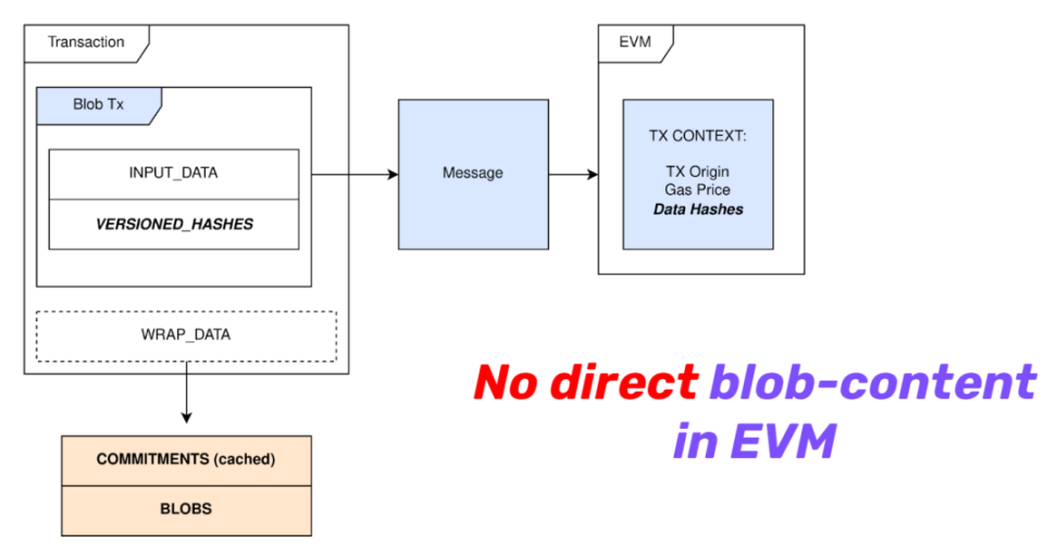 我们称这种数据为「blob」,这是一种非常模糊的数据形式,类似于一种字符串。「Blob」会被附加到一笔交易中,这笔交易就像其他交易一样在以太坊系统中运行。