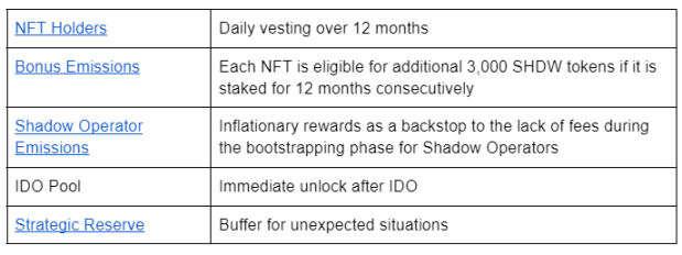 As of 31 Oct 2022, the max supply has been readjusted to c. 170m tokens after the team decided to burn 30m of tokens from the Strategic Reserves and Operator Emissions pool. This decision was made because Shadow Operators will now receive revenues directly in USDC, rendering the Operator Emissions pool redundant, and the team no longer saw a need to have any Strategic Reserves set aside.