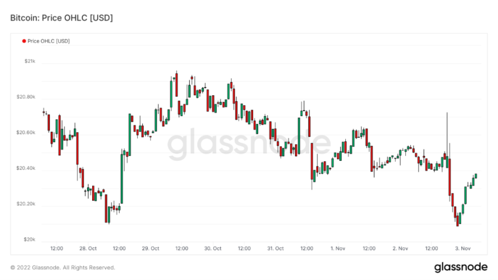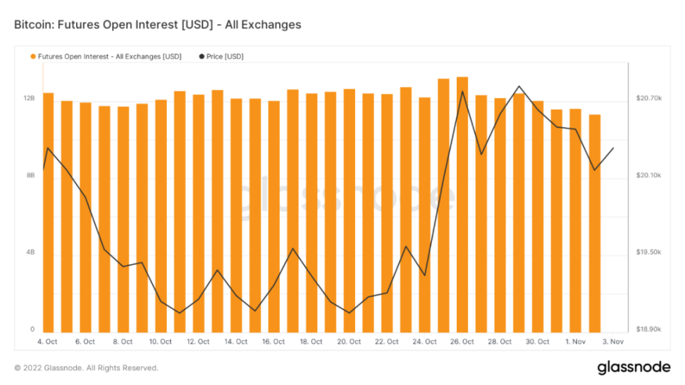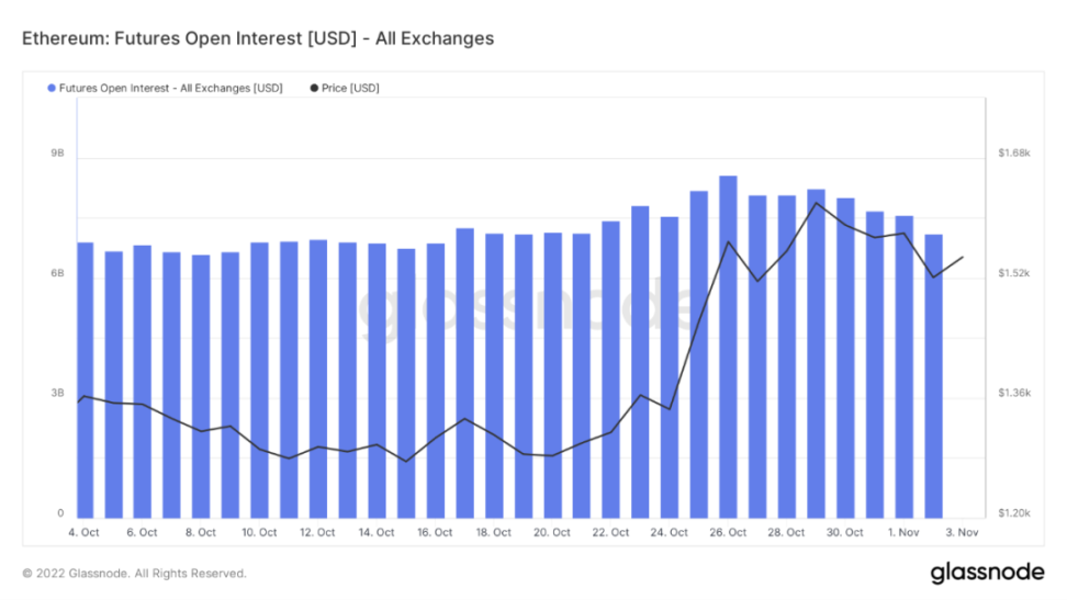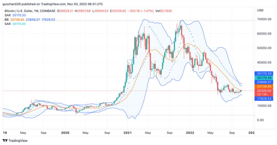 这周 BTC 在经历了几个月极低波动后,已回升到 2 万美元关键心理水平之上。此次反弹主要由三大利好促成,首先市场在交易美联储转向预期。这个预期是美联储基于经济的判断还是为民主党选举而收买选民,尚无法确认。如果是前者则可持续,如果是后者则选举结束还会继续下跌。其次消息方面,随着马斯克正式收购推特,有关推特将进行 Web3 改造的传闻传开,相关 Meme 币纷纷飙升,场内赚钱效应大幅改善。最后交易方面,空头在过去一个月不断加大押注,大规模清算反而成为上涨动能。反弹趋势仍然持续,反转尚未确认,接下来 11 月 10 日的 CPI 数据显得尤为重要。