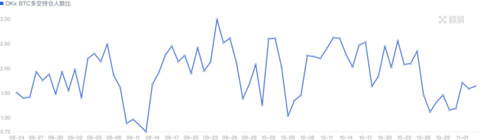 期货多空比:1.7。散户偏多,市场可能有回调风险。多空比数据波动大,参考意义有所削弱。
