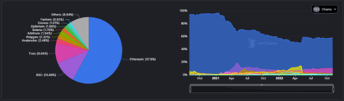 本周 TVL 总量下降 0.73b,下降幅度为 1.33%;BSC 链出现流量回归的姿态,连续两周 TVL 总量涨超 10%,重新回到第二名,另本周 Optimism 出现较大下跌,与之对应的 Arbitrum 承接了此部分 TVL,可能是受到 Nitro 网络升级影响,短期内出现交易量和交易用户人数的双增。