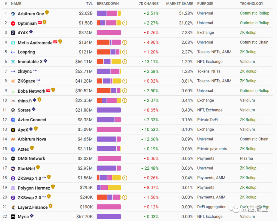 目前看,空投大军的全职化受益最高的可能是 Arbitrum,26 亿的 TVL 占据了整个以太坊 Layer 2 总 TVL 的一半。