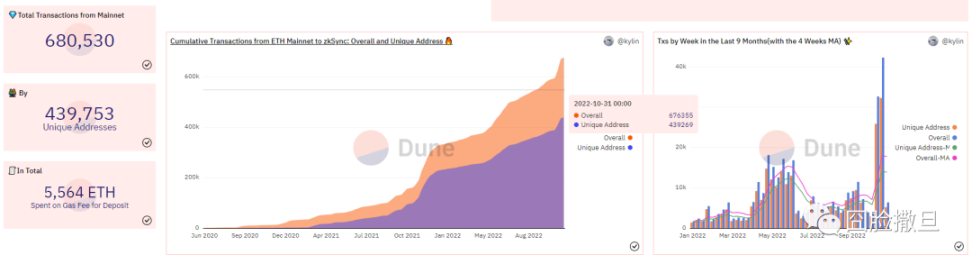 Zksync 2.0 上线刚一周,主网并未开放,测试网交易次数达到 85 万次,1.0 主网交易次数超过 1200 万次。