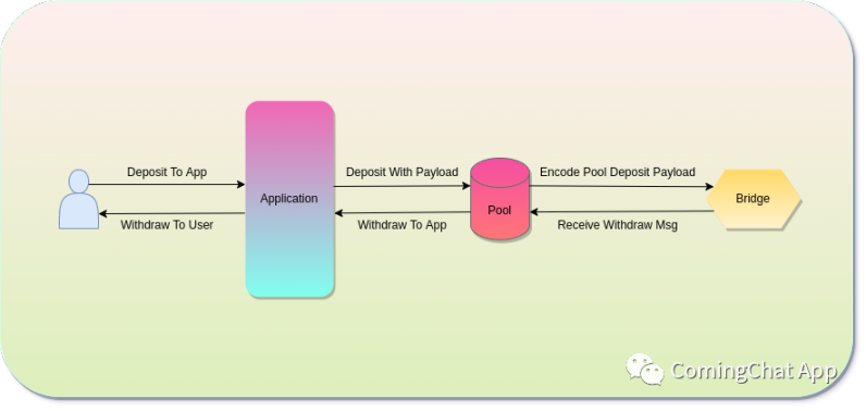 单币池需要对外提供充值的接口,以及对消息协议桥提供提现的接口,并且要对来自应用的消息进行打包再发送给桥。