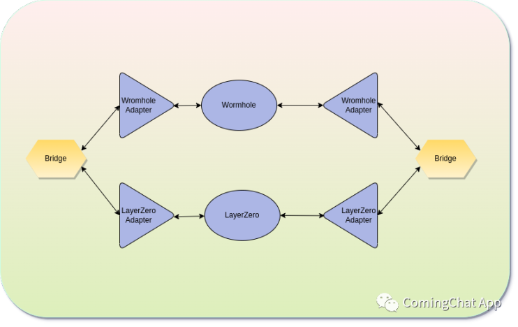 桥是不同跨链消息协议的适配器。为了实现不同公链消息的通用性,协议将制定统一的消息规范。其中消息属性的类型满足数值统一转换成 64 位整数,地址统一转换成字节类型,其他数据也统一用字节类型表示。桥接收到单币池消息完成类型转换后,会调用不同的跨链消息协议接口完成消息传输。