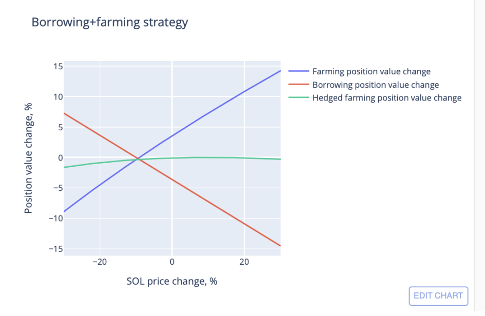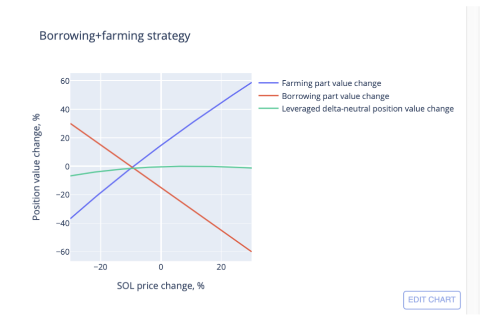 让我们看看 SOL/USDC 德尔塔中性 farming 头寸如何随着 SOL 价格的变化而变化: