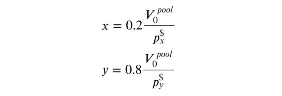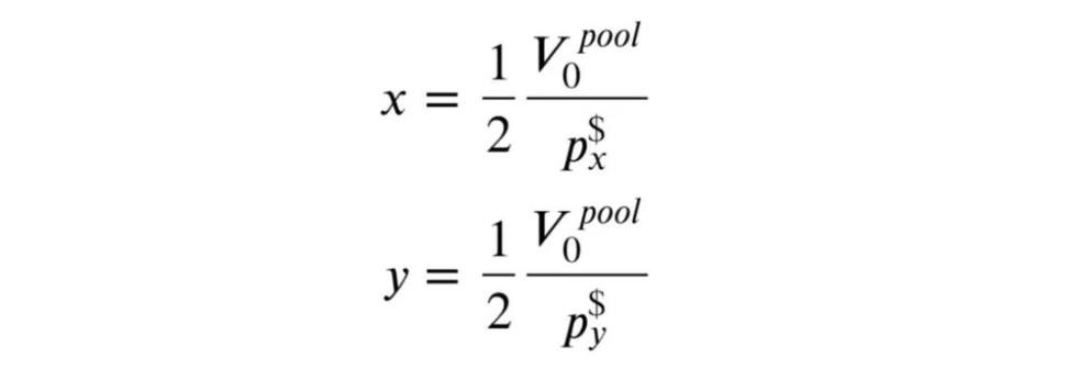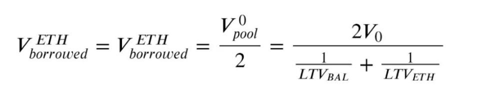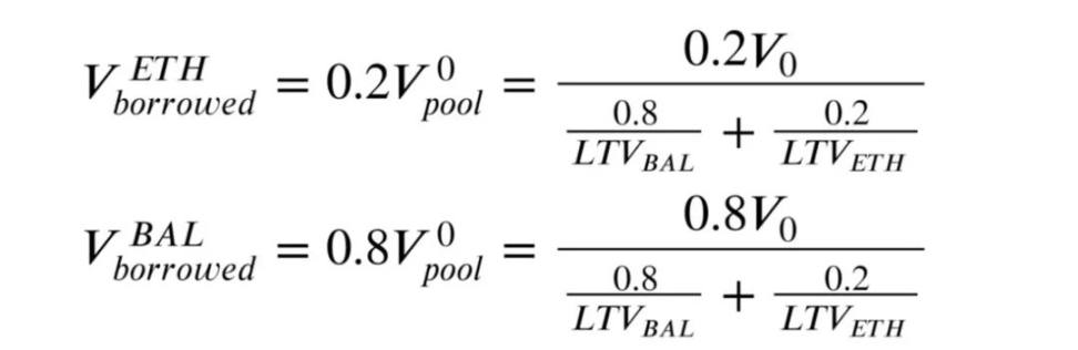 所以如果有 V0 USDC 可以投资,我们应该借的 ETH 和 BAL 价值为:
