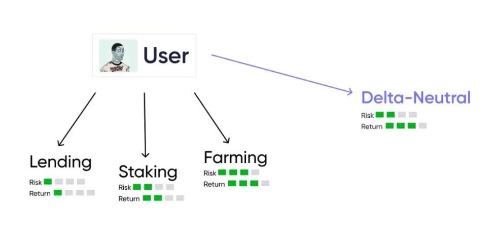 但你可以在不受资产绝对价格影响的情况下,通过提供流动性获利:对冲有助于我们消除定向风险,但通过提供贷款或稳定币交换获得更多收益将在池资产相关性上承担风险,这会导致 IL。