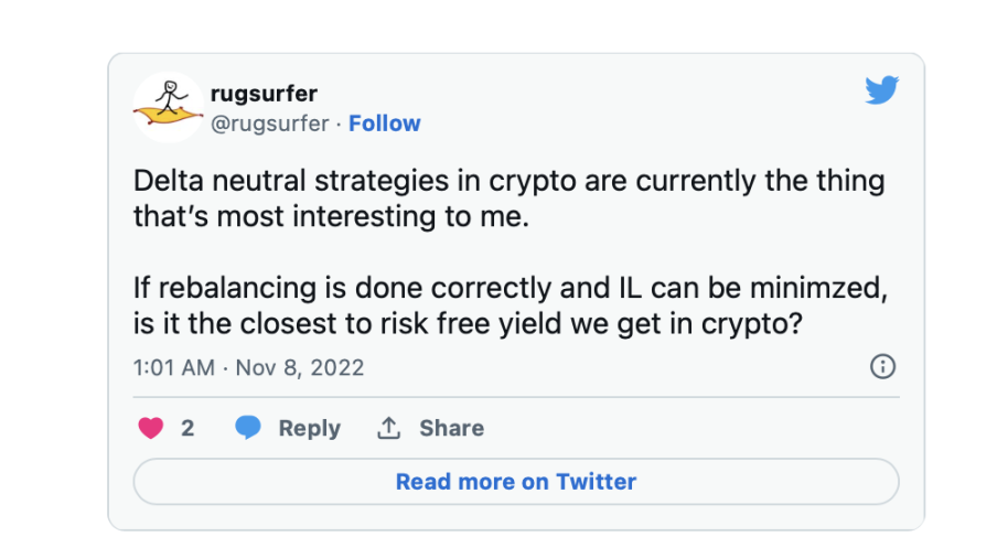 此外,我们将通过在流行的 DeFi 原语的头寸中添加“空头”部分来研究如何安全地 farm 波动性代币对。我们将专注于完全链上的策略,但你可以复制它们,在中心化交易所的任何地方用永续期货的空头头寸替换任何空头。