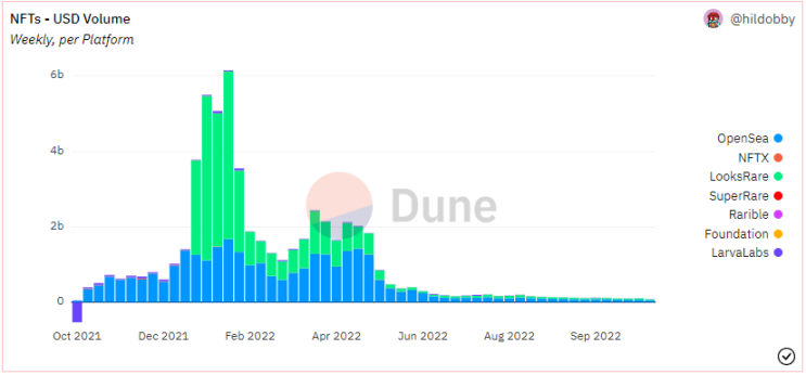 虽然这一转变受到了 NFT 创作者社区的批评,但许多市场也跟随客户行为转变的要求,将创作者的版税作为非必要选项。Solanart 则采取了更进一步的措施,永久免除了其平台费用,允许用户在其平台上自由交易。基于以太坊的 NFT 市场也不例外,LooksRare 等平台最近也加入了这一行列。