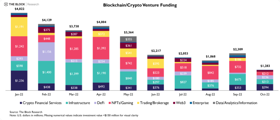 即将到来的几个月将证明哪些公司为漫长的冬天做好了准备,哪些公司就像一个幻想着 “只涨不跌” 环境的加密货币 Degen 交易员一样肆意妄为。10 月已经是自 2 月 21 日以来融资金额最低的月份,而且是发生在这场动荡之前。