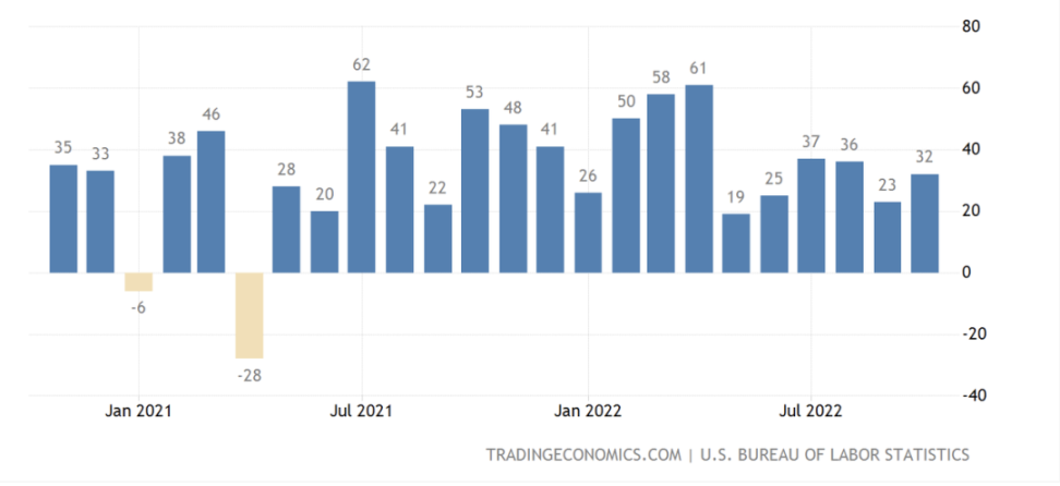 过去 2 年美国制造业就业人数变化(单位:千人),Source:美国劳工部