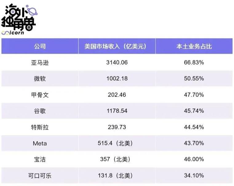 拾象团队整理了部分全球跨国公司分地区的收入贡献,发现美国市场的贡献几乎都在 40% 以上,Amazon 的本土业务收入甚至达到了 66.83%,其次是欧洲,贡献了 20-30% 的收入,而亚洲平均只占 10-25%。如果按照利润贡献比来看,美国地区用户的贡献度同样也是全球最高。此外,在我们整理的全球范围 2023 年预测增速有 30%+ 的上市公司中,大部分也都是美国公司。
