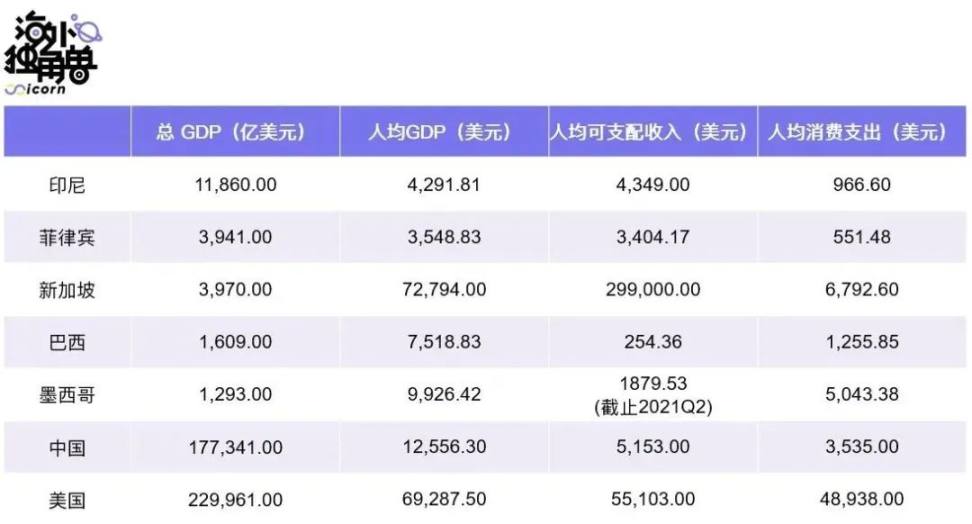 截止 2021 年东南亚、拉丁美洲代表国家 GDP 水平。Source:World Bank Database、各国统计局公开口径