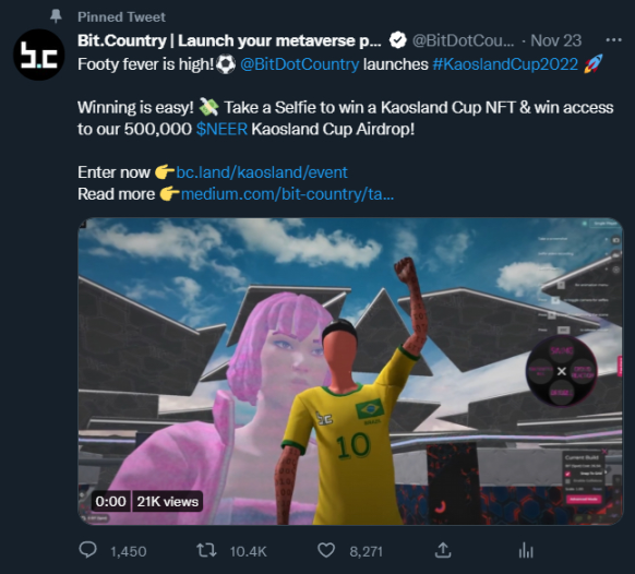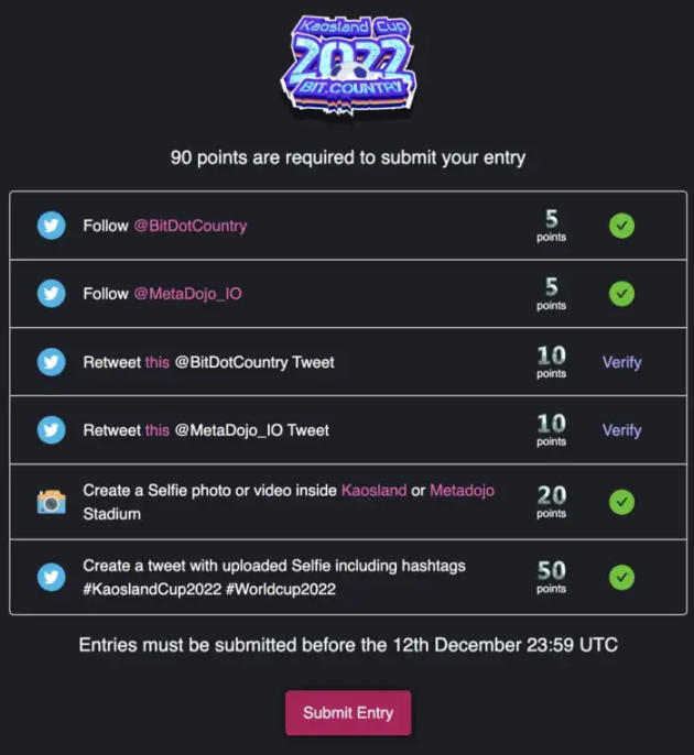 注意:如果您想要发布定制化推文,请确保推文中包含@BitDotCountry,并使用#KaoslandCup2022和#WorldCup2022的 tag。