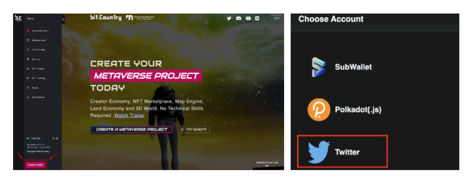 如果您还没有 Bit.Country 账户,可使用上方链接,用您的 Twitter 账户直接注册。