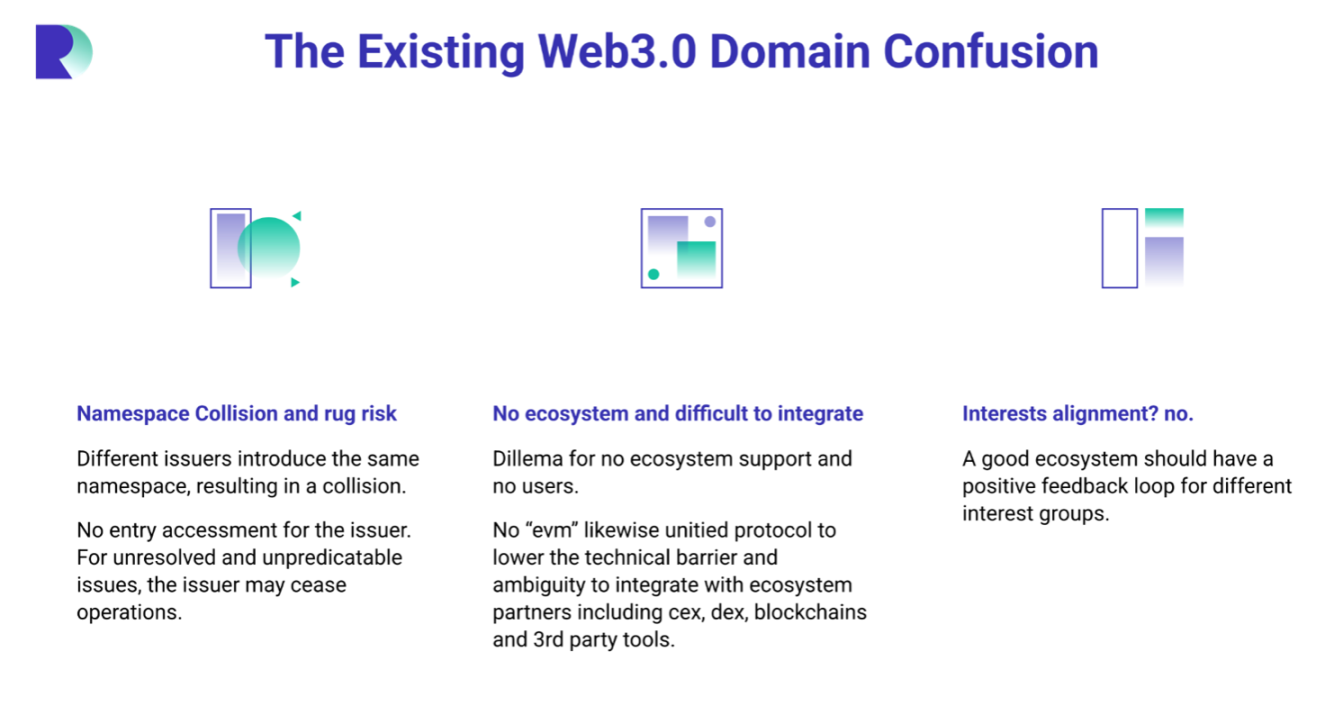 但目前每个链和生态似乎也都有了自己的域名服务,彼此间形成了一个个孤岛,缺乏联动和生态效应,不同域名的分配、管理和技术对接等步骤,尚未有统一的框架和标准。