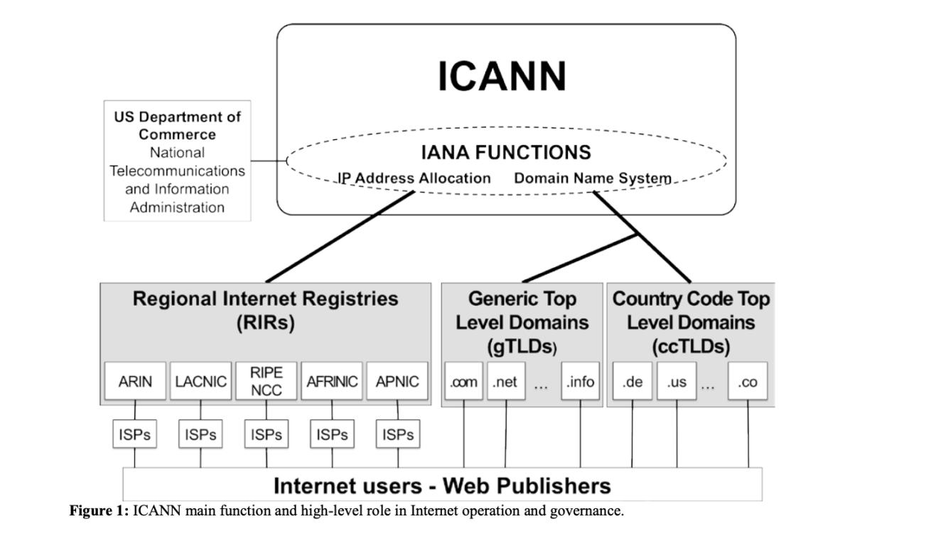 ICANN,即互联网名称与数字地址分配机构,在传统互联网世界里定下了域名分配和管理的规则。由它来统一处理 IP 地址的空间分配、通用顶级域名(如.com)以及国家和地区顶级域名(如.US 等)的管理。