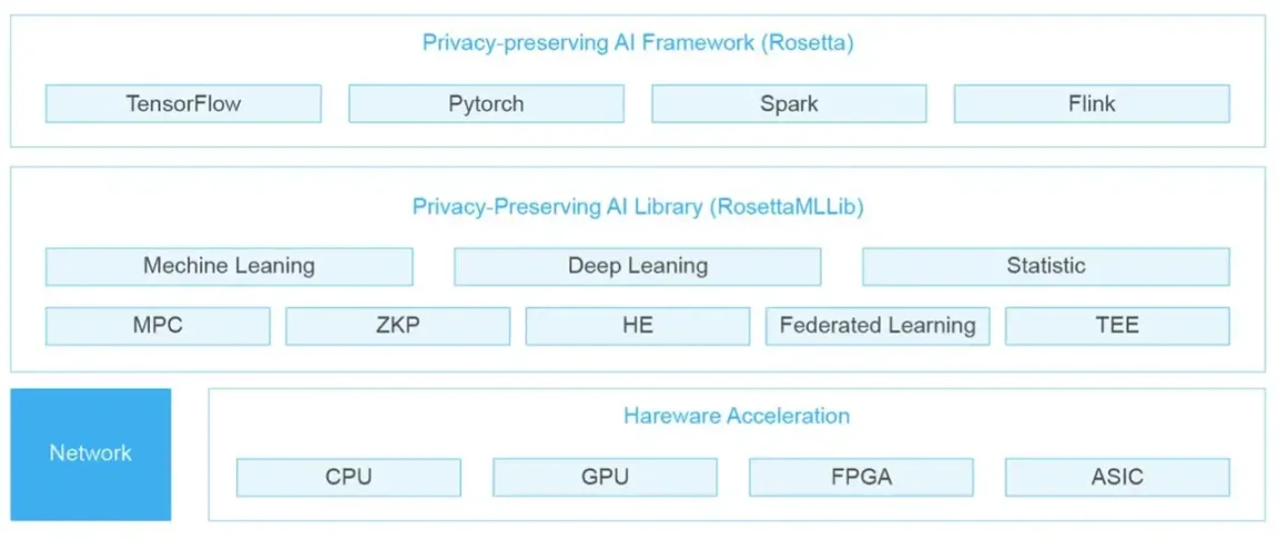 **4. The realization of privacy computing. **Privacy computing systems need to be deeply studied in algorithms, architecture and implementation, and how to achieve efficient and accurate privacy computing has become a technical problem.