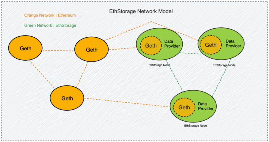 EthStorage 的数据节点是以太坊客户端 Geth 的超集,因此运行 EthStorage 的节点也可以很轻松的接入以太坊网络。
