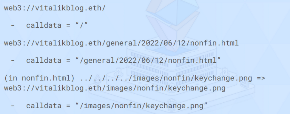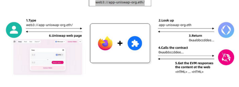 与 web2 通过访问服务器资源的方式不同,web3:// Access protocol 通过 Web3 URL 直接去渲染在以太坊智能合约上面托管的资源,包括 HTML、CSS、PDF 等这样的文件。