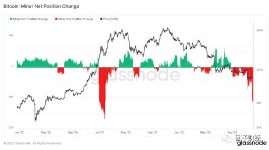 Glassnode 发布了一张出色的图表,显示了矿工持有的比特币 30 天的净变化。