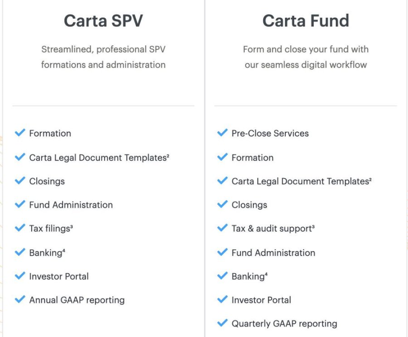 通过所积累的 Private Market 经验,Carta 可以帮助客户在六周内组建一支新的基金。