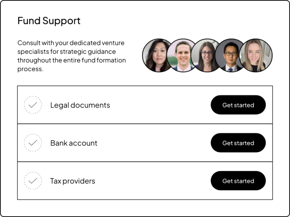VC 专家团队可以随时提供全面的咨询服务——从基金结构到银行、法律和税务的相关流程,再到在整个基金组建过程中的战略指导。