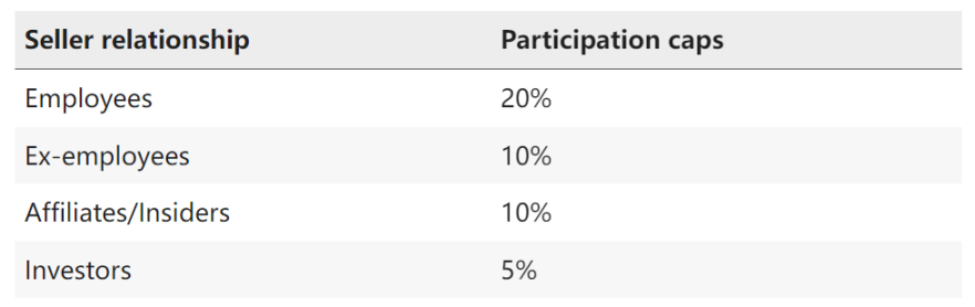 客户在 CartaX 专业团队的帮助下,可以建模并定义最适合业务需求的股东资格和流动性上限。在 Carta 对自己股权进行二次交易时,基于每年 6%-8% 的股权稀释目标,Carta 确定了每个股东团体的参与上限: