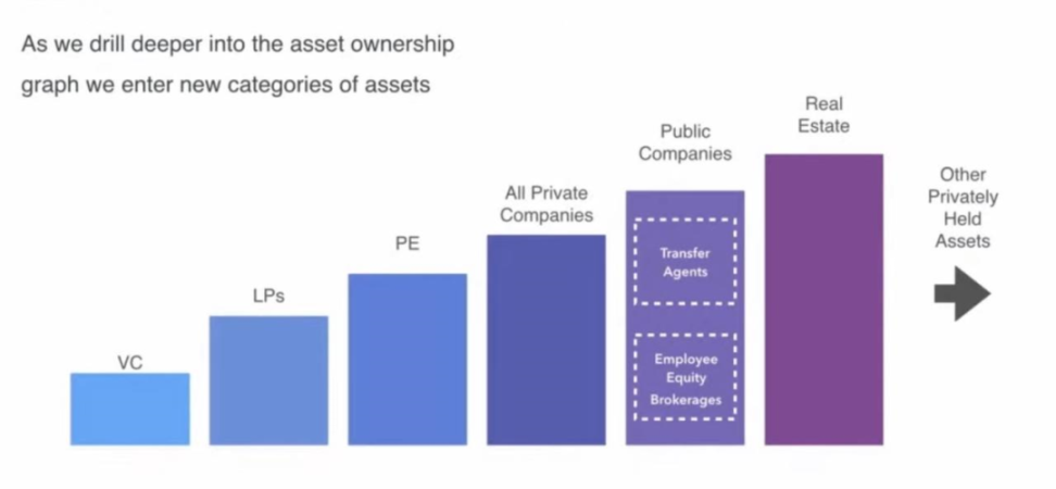 但 Herny 最初的目标不止于此,股权结构表启发出他更大的想象。假如有能力收集私人公司的股权结构表,然后帮助他们向投资人发送股权证书,使投资人将这些股权放入自己的投资组合,再为每个人都建立一个投资账户,这样就相当于搭建起一套以股权为基本单位,链接众多公司和投资者的基础设施,最终可以在这个基础设施上建立一个 Private Stock Market,由此为 Private 公司提供更好的股权流动性解决方案。