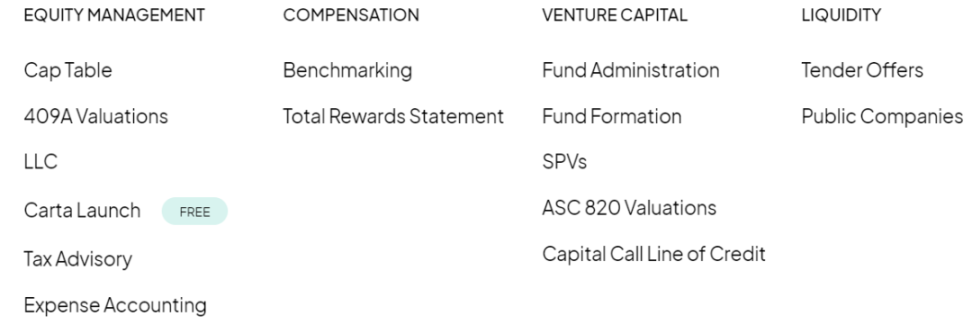 目前 Carta 提供的服务可以分为三个大类: