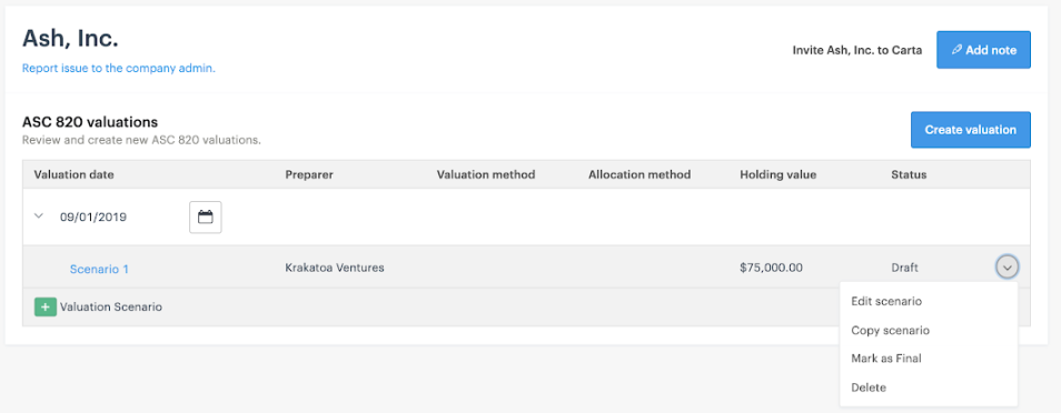 而通过 Carta,公司可以随时生成最新的 409A 估值报告,流程十分简单,仅需要按照步骤提供相应信息。