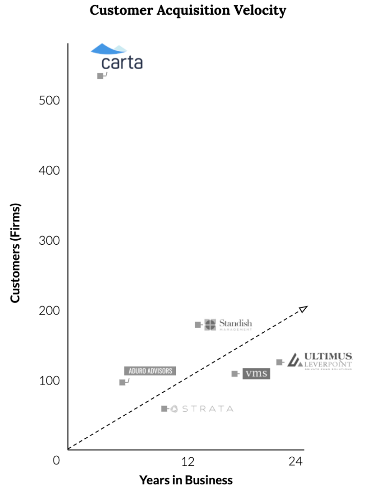 可以说 Carta 在一众竞争对手中具有绝对的领先地位。依托上述的生态网络能力,后续的竞争者很难在短时间内威胁到 Carta 的地位,且 Carta 可以实现一定的马太效应。