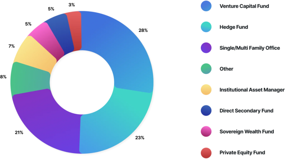 当公司发起交易并获得批准,Carta 会在接下来的四个星期里利用 CartaX 投资者平台举办投资者日,举办现场问答环节,并与 Carta 认为可能成为企业长期合作伙伴的投资者进行战略会议。投资者背景十分丰富,包括但不限于 VC,对冲基金,家办:
