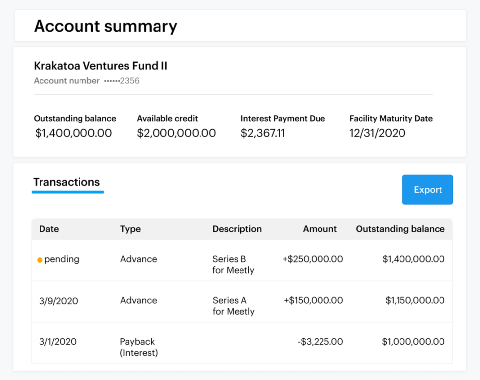 通过信用贷款,投资机构可以快速地为交易提供资金,最快在一天之内便可获得贷款。贷款流程简单,可在平台上实时查看贷款概览,包括每笔贷款的未偿余额、可用信贷、利息余额和到期日。双击每笔贷款可以查看利率、借贷基础、有效和历史预付款、以及交易历史等。