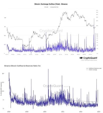 然而,根据 CryptoQuant 的数据,按照比特币流出量 / 储备比率计算,该公司在 2021 年和 2020 年曾经历过更大规模的提款浪潮(上图下半部分所示)。