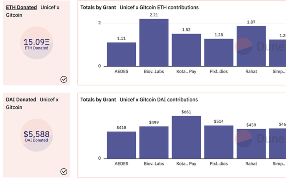 我们与联合国儿童基金会的首轮资助如火如荼!截至 12 月 14 日,我们有超过 1000 名独立的捐赠者。该轮捐款还超过了 25,000 美元,来自 ETH 和 DAI 的联合捐款。