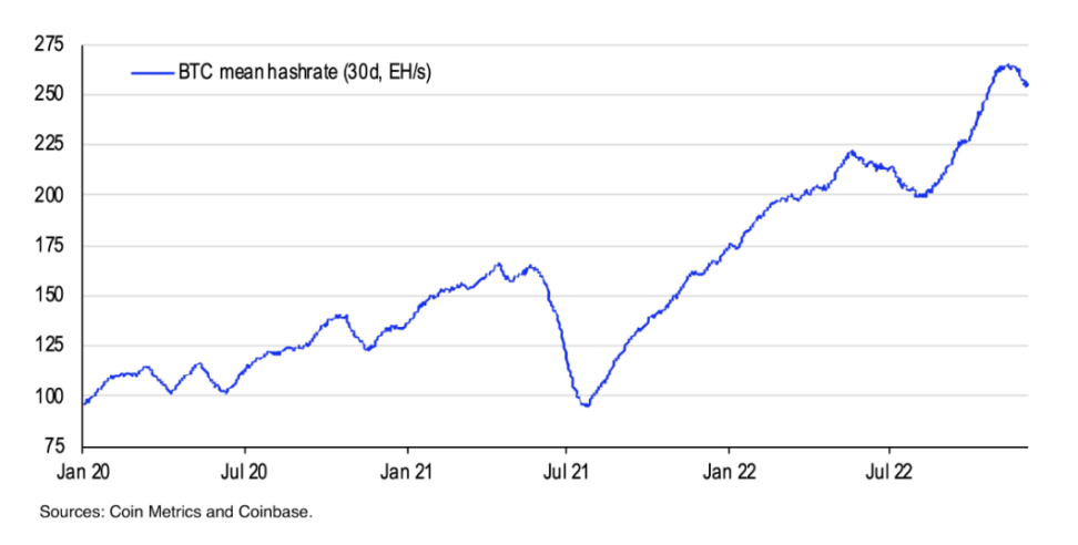 图 7 :比特币平均算力(30 天,EH/s)