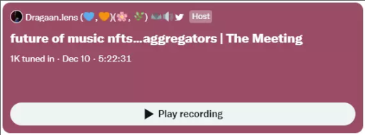 起初嘛,音乐人发 NFT 也就发了,NFT 里的媒体文件本身是公开的,谁都能听。但是作为粉丝,你在不同的平台上买了几首歌,想放在一起听咋办呢?所以就有人做了聚合器,把不同市场的音乐人和作品聚合到一起,当播放器用(听的好你再去买嘛)。音乐人一开始也没啥意见。