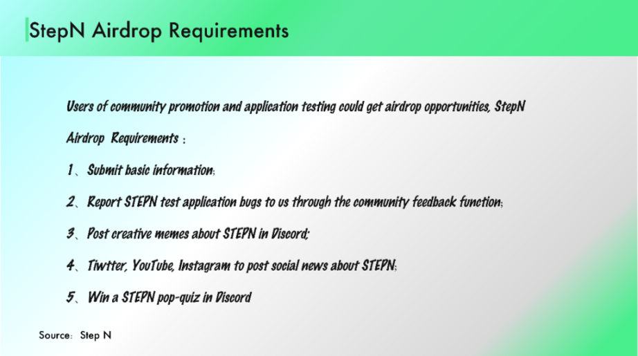 3. Long-term Value captured by the development team: For the project party, the income brought by selling NFT is very considerable, while StepN chose to airdrop NFT to the initial users for free. The way to get the airdrop is very simple, promote and try it out. In this way, StepN strengthens the bond between the community and the initial users, which brings about 10k quality participants for StepN. It is worth noting that StepN is not a niche project. On the contrary, at the very beginning, StepN’s investment team included many top institutions such as Solana Venture and Folius Ventures. Selling NFT will bring a lot of benefits to the project, however StepN gives it away for free. Such losses are also obvious, the project will not get obvious income before launching the game, they took the long view.