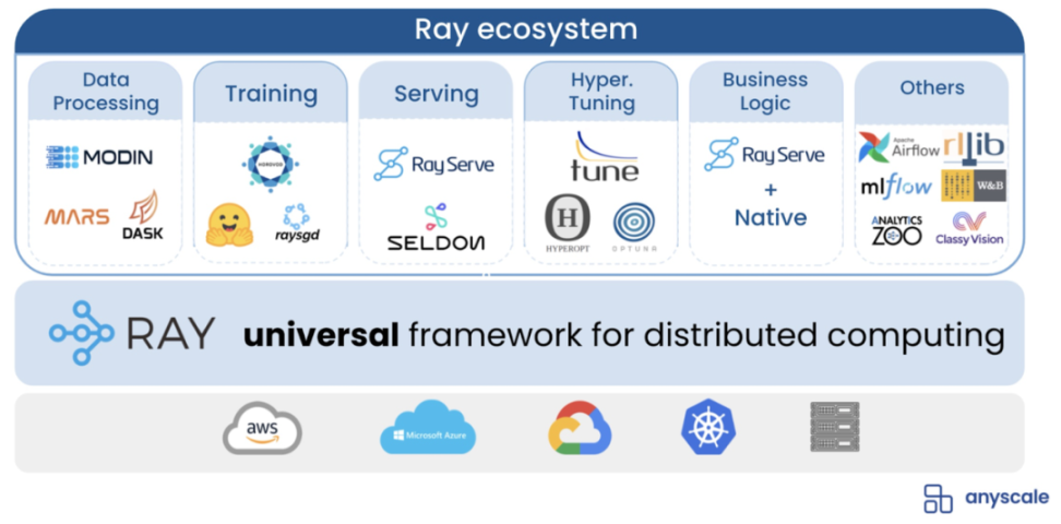 Anyscale 的分布式计算平台在开源分布式框架 Ray 之上建立。Anyscale 内部习惯将其开源产品称为 Ray,将商业化产品称为 Anyscale。
