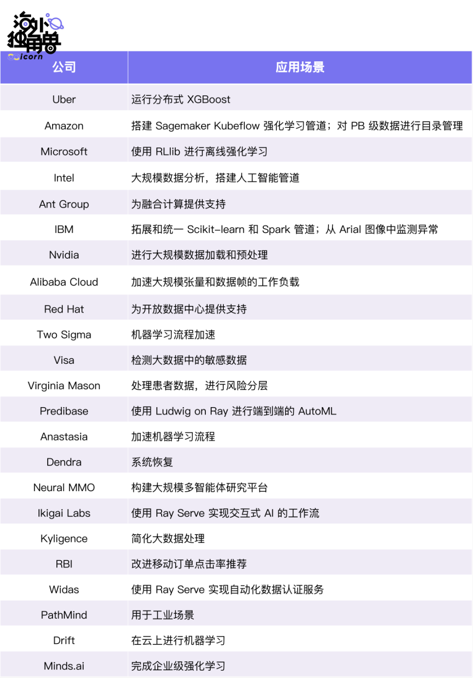 以下是 Ray 的标杆客户的应用情况: