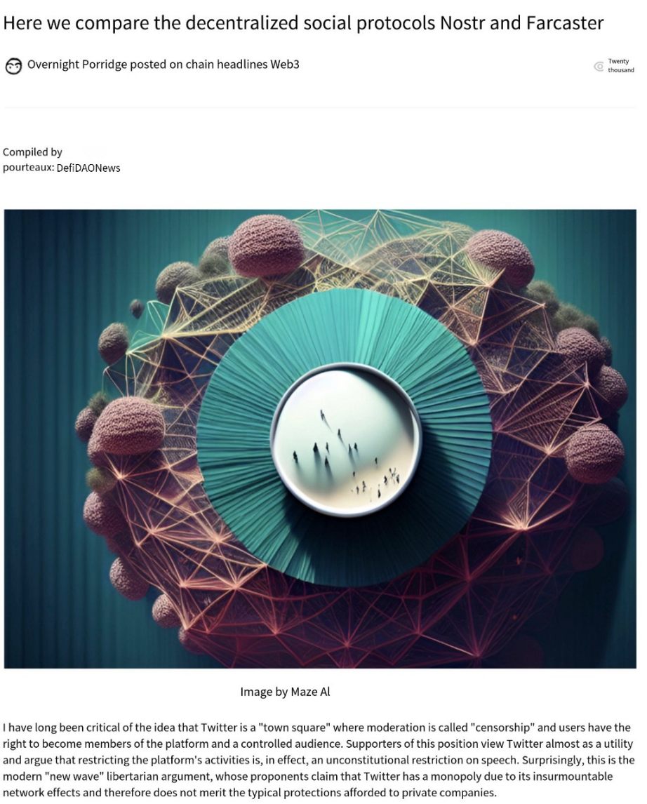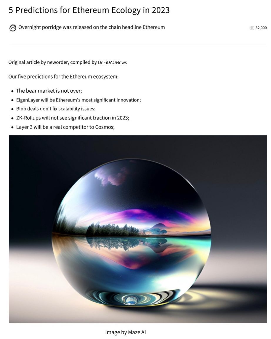 This means that DeFiDAONews has abandoned the original Web 2.0 paid library copyright gallery model and replaced it with its own copyrighted images created by Maze guru. The cooperation with Maze guru completes the transformation of DeFiDAONews’ image usage process across the platform.