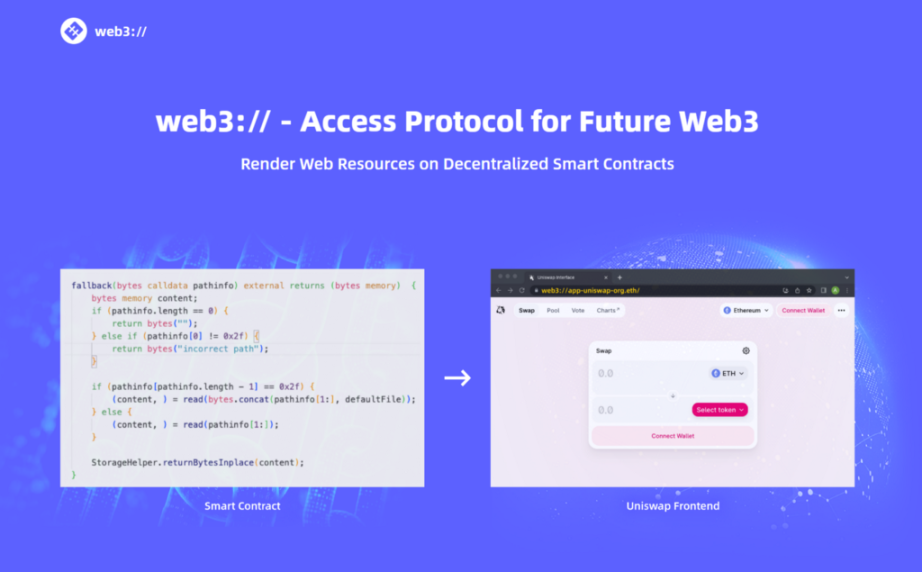 EthStorage 提出了 EIP-4804/W3IP-1:用 web3:// URL 来作 EVM 调用信息转换,它将 HTTP 样式的 Web3 URL 转换为 EVM 调用消息。 目前,从 Web3 读取数据主要依赖于 Web3 代理到 Web3 区块链。 这一处理工作主要由 dApp 网站 / 节点服务提供商 /etherscan 等代理完成,而不受用户控制。 这一标准旨在为 Web2 用户提供一种简单的方式来直接访问 Web3 的内容。 此外,该标准支持与其他已经与 URI 兼容的标准(如 SVG)的互操作性。